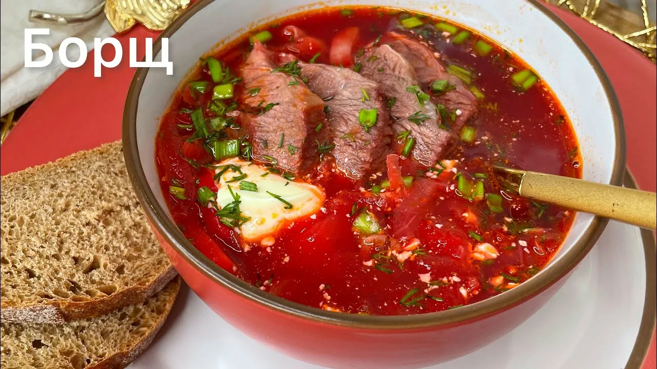 Борщ — это наваристый суп, главный ингредиент которого — свёкла. Именно она придаёт борщу ярко-красный цвет и характерную сладковатую кислинку.