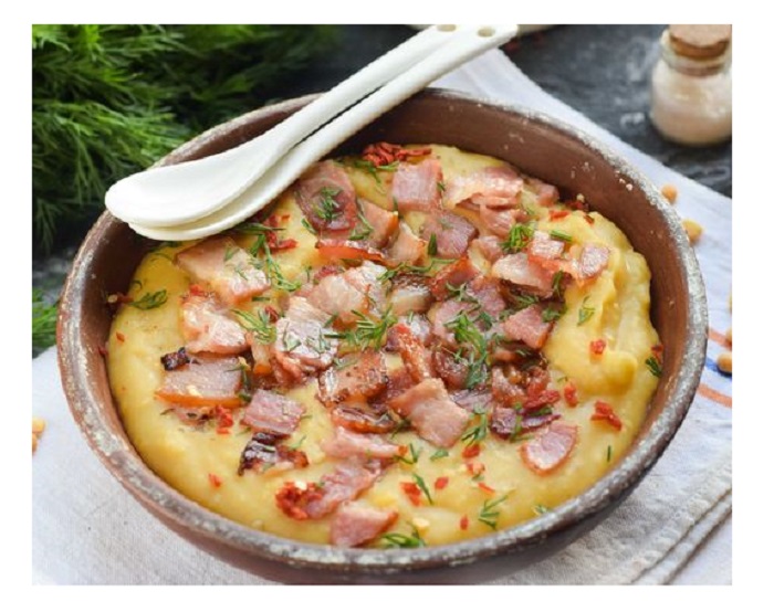 Гороховое пюре - это удивительно вкусный и аппетитный гарнир. Чтобы пюре из гороха получилось более ароматным, добавим в него обжаренные бекон и лук и сливочное масло. Поджаренный копчёный бекон придаёт пюре особый вкус.